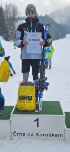 Žiga je z odličnim smučanjem in najhitrejšim časom osvojil 1. mesto.